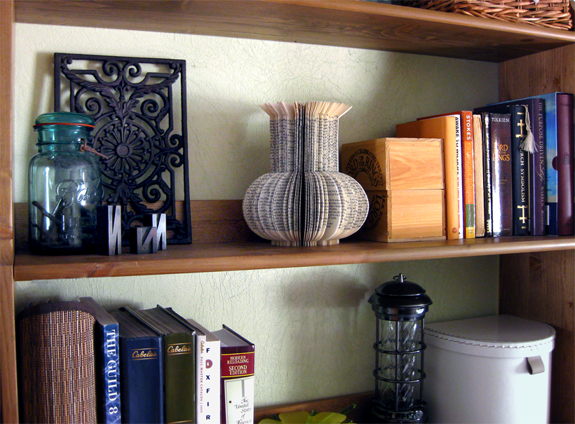 Do you fancy yourself a Bibliophile? Or maybe you just love the look, feel and smell of old books. Either way, this one’s for you! Today I’ll show you how to make a ‘vase’ out of a hardcover book. It’s the perfect piece to decorate your favorite reading nook or a book shelf and is easy to make requiring just a few tools and no special skills.