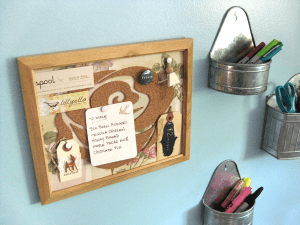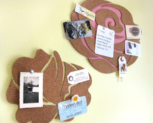 Even though you have two layers of cork on both of these projects, it’s still a bit thinner than your standard bulletin board, so you’ll need to use shorter push pins and tacks or cut down some longer ones with wire cutters.