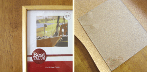 Open up the frame and use the glass as a template to cut a piece of cork to the same size. You will not be using the glass in the finished piece.