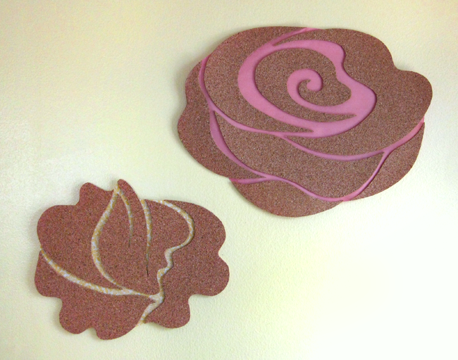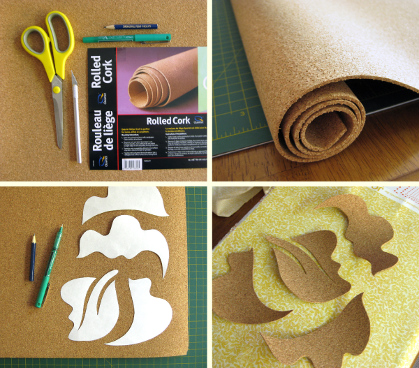 Print and cut out the small rose template (found at the end of this post) then trace the pieces onto the cork and cut them out as shown in the project above.