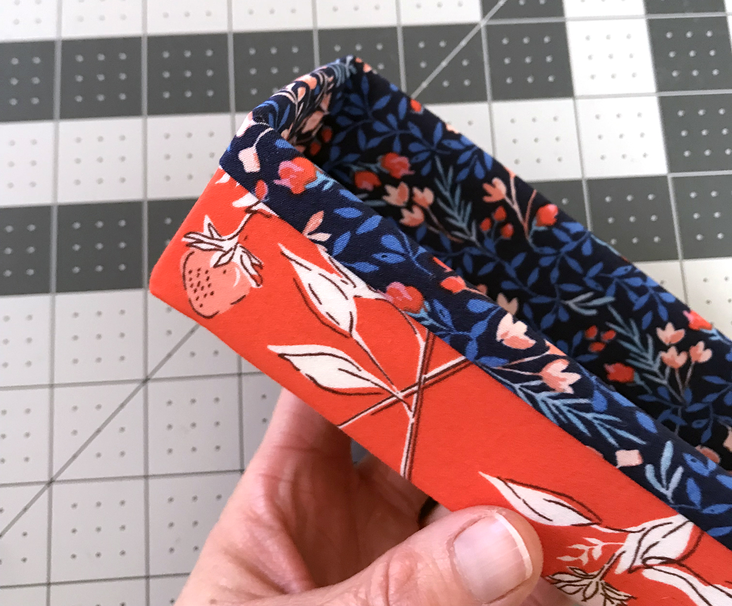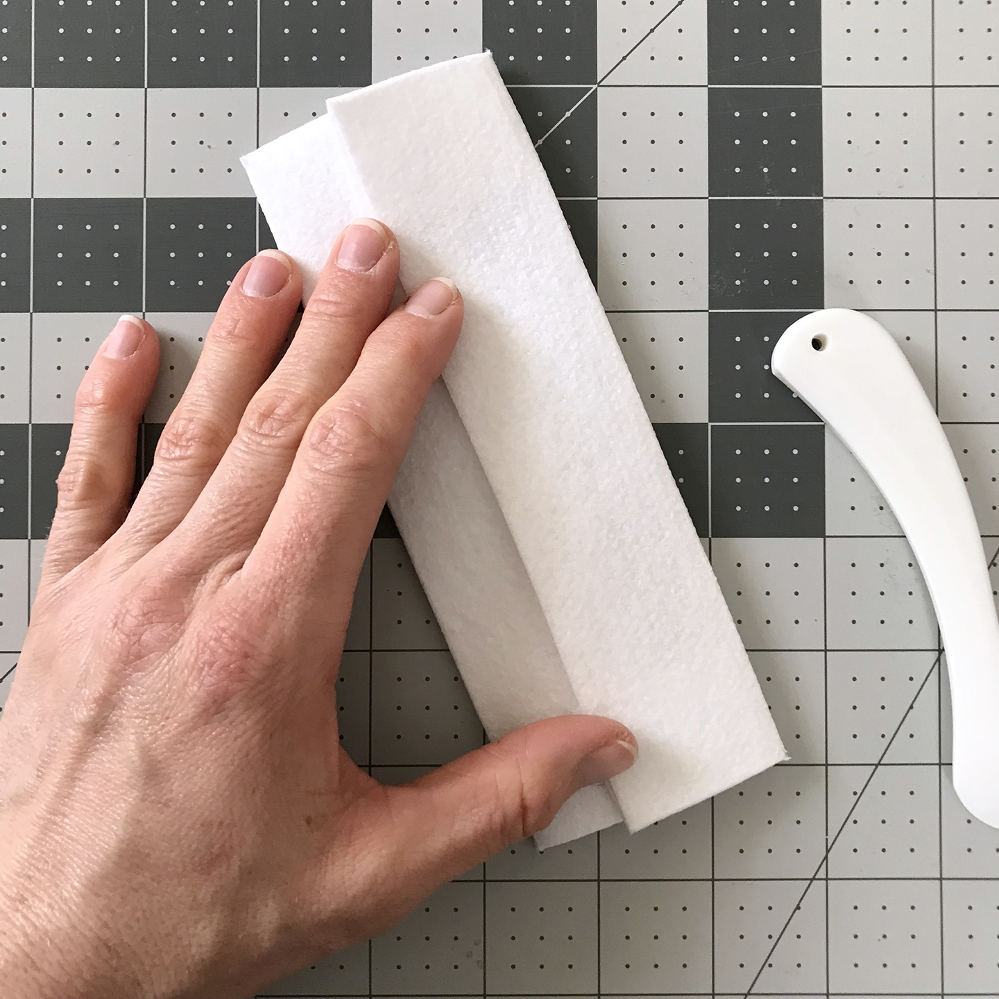 The last step is to fold everything up on itself and place the folded Peltex piece under something heavy, such as a stack of books or under your sewing machine, for a few hours or preferably overnight.