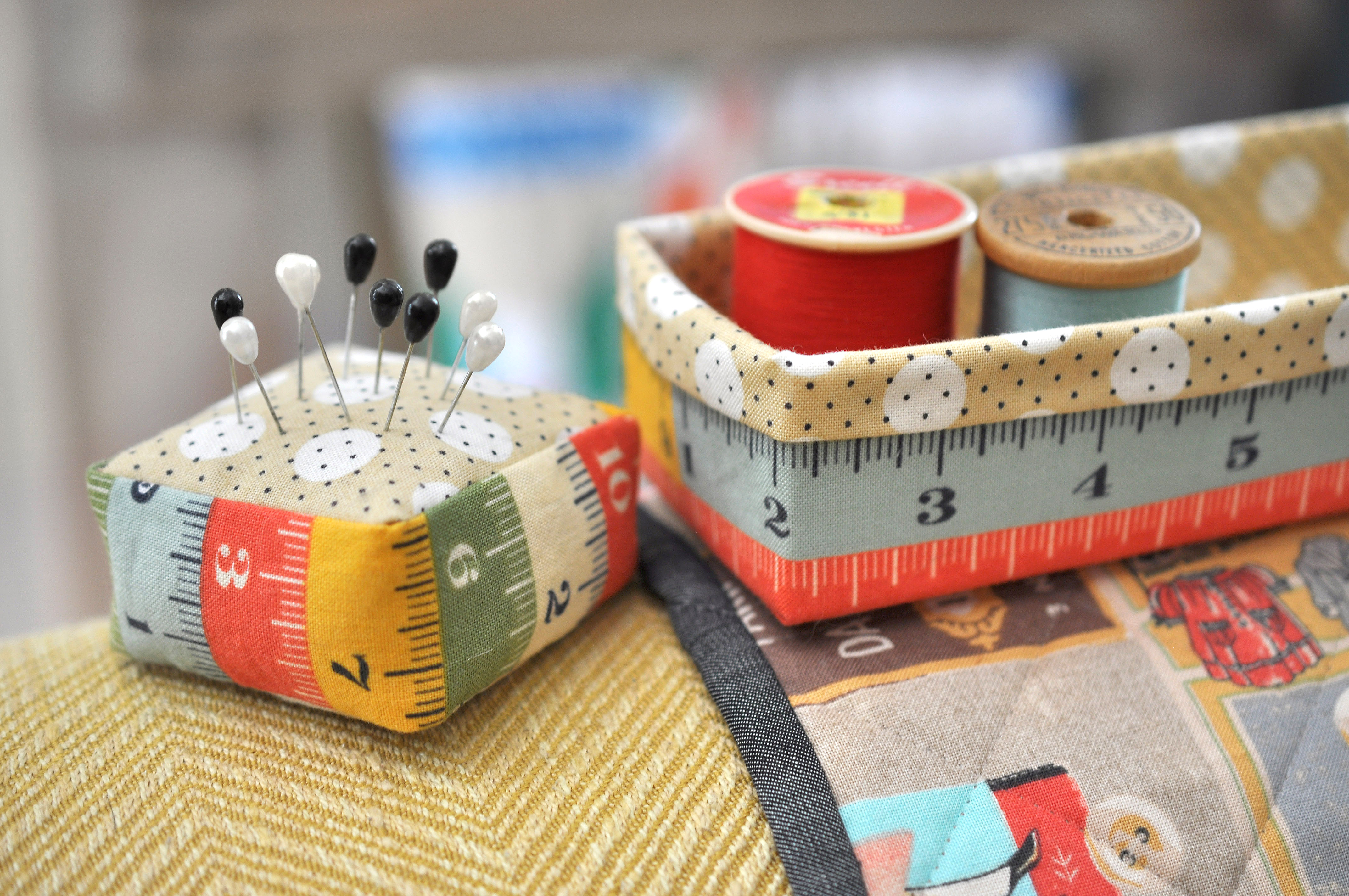 This week we’re moving on to the pin cushion and fabric basket and today I’m going to share some helpful tips for keeping your basket nice and crisp, and just a note, these same tips apply to making any size or shape of my free sturdy fabric basket pattern.