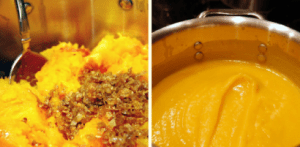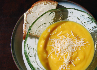 Enter the butternut. A winter squash, butternut has bright orange flesh with a texture and sweetness similar to pumpkin. Available amost anywhere and at most times of year, it makes a good substitute for fresh pumpkin. Not only is it perfect in sweet recipes like pie, bread, and cookies, it fits nicely in the savory scene as well. I love to use butternut in fillings for homemade ravioli, or baked and topped with butter as a simple side dish. Most of all, I adore the creamy texture and rich flavor of a butternut squash soup.
