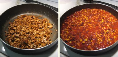 I was going to share an easy and delicious recipe for banana pineapple cake with you today, but after a slight banana mishap, I am now sharing an easy and delicious recipe for Mexican Lasagna instead! Mostly basic ingredients, one skillet, a baking dish and 30 min in the oven makes you a hearty pan of stick to your guts goodness that is sure to please. You can easily customize this recipe to suit your tastes by adding or changing ingredients and any leftovers reheat well in the oven or microwave. You will find a printable recipe card at the end of this post.