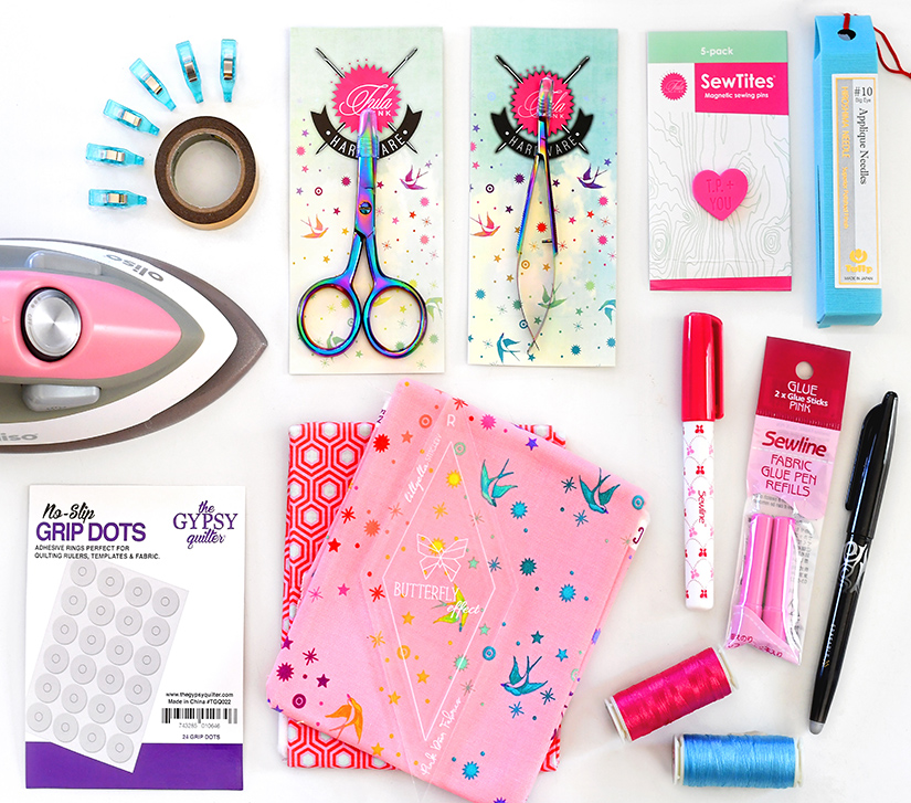 I’ll also be using washi tape, clover clips, pins and my glue pen to help keep everything in place as I sew. I don’t often use my SewTites when I’m initially stitching these smaller pieces simply because of size, but they are indispensable when I start joining larger sections together and will show you that in a few weeks!