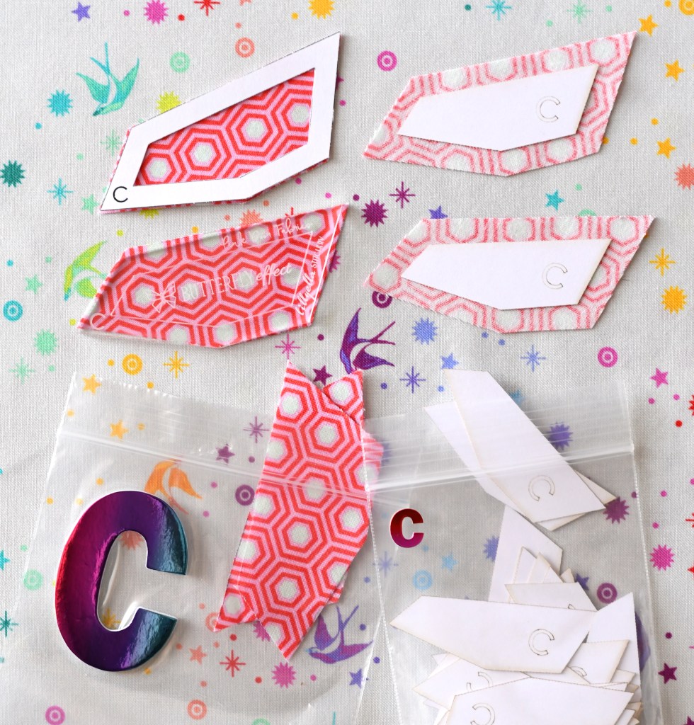 If you are printing and cutting your own papers, you can skip to the organization section. If you ordered a laser cut paper piece set from Pink Door Fabrics, this next part is for you! UPDATE: Supplies are now currently available from PAPER PIECES HERE and are formatted differently. Thanks!