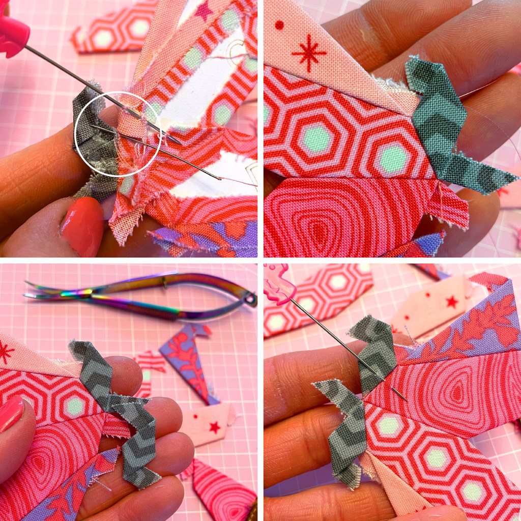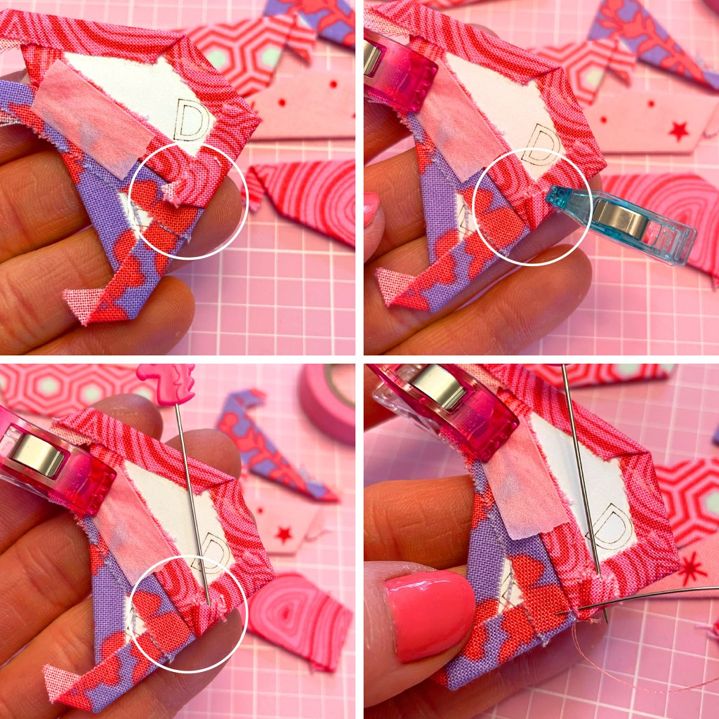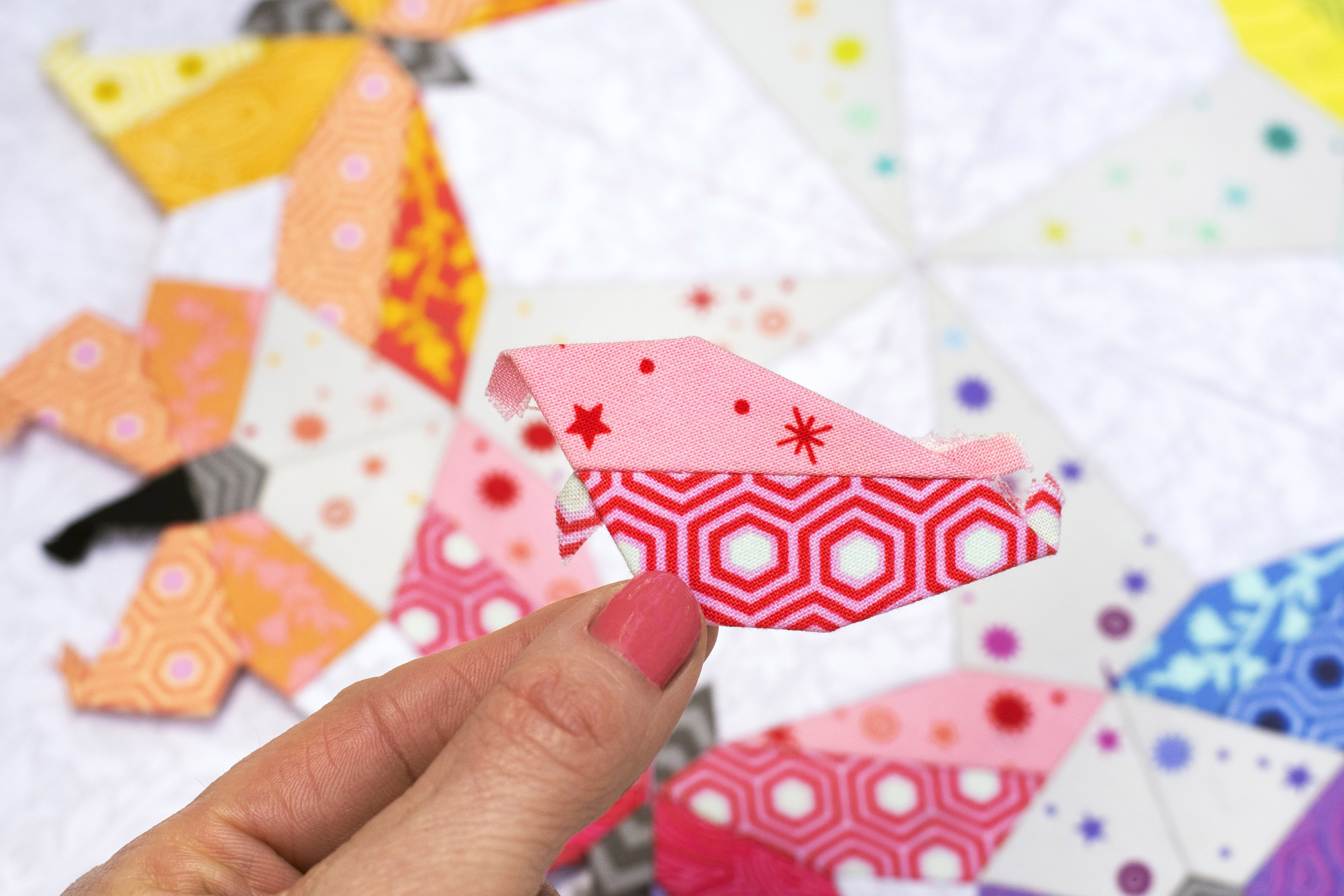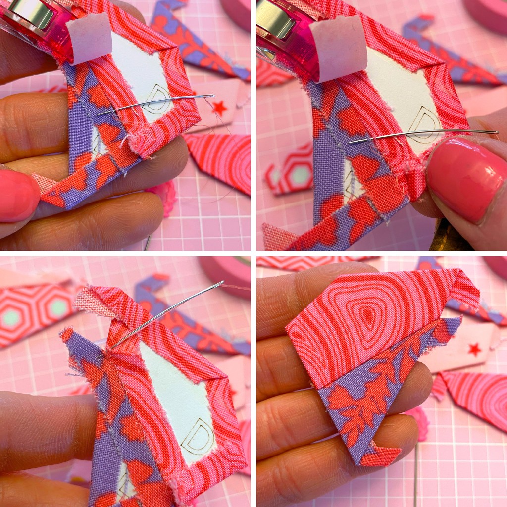 With some of the smaller pieces in this patter, you will notice that your entire paper is encased within the fabric seam allowance of your piece, and this is OK! You will be able to gently lift the folds to be able to remove your papers later.