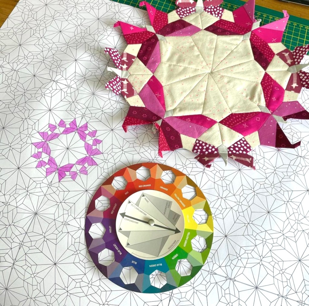 This week we’ll be working on project planning, pulling fabrics, and prepping our basting papers. Week two, May 10, I will dive into cutting fabric using templates (acrylic or printed) and basting the fabric to the paper pieces. You can select a few sections (or as many as you’d like!) to start with to get comfortable with the process. Week three, May 17, we will start piecing all those bits together and then you will continue to work at your own pace for a few weeks until I share some finishing details toward the end of the sew along. I will have photo prompts for you to share your progress on social media and/or via email as we go, as well as prizes along the way for doing so!