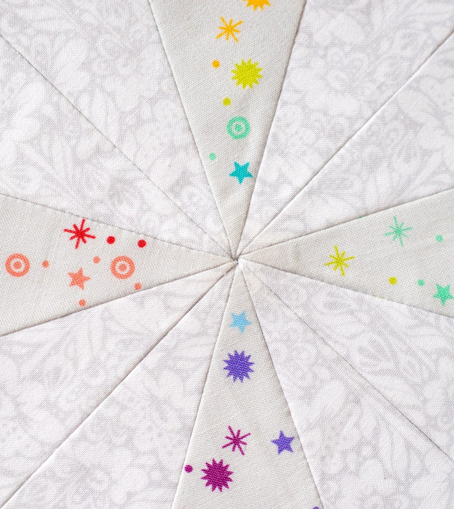 Let’s start by talking about star centers. As much as I love perfection, I’m not bothered that mine are never quite perfect. There are a few things I like to do to help me keep things lined up and to help with all the seam bulk that gathers on the back.