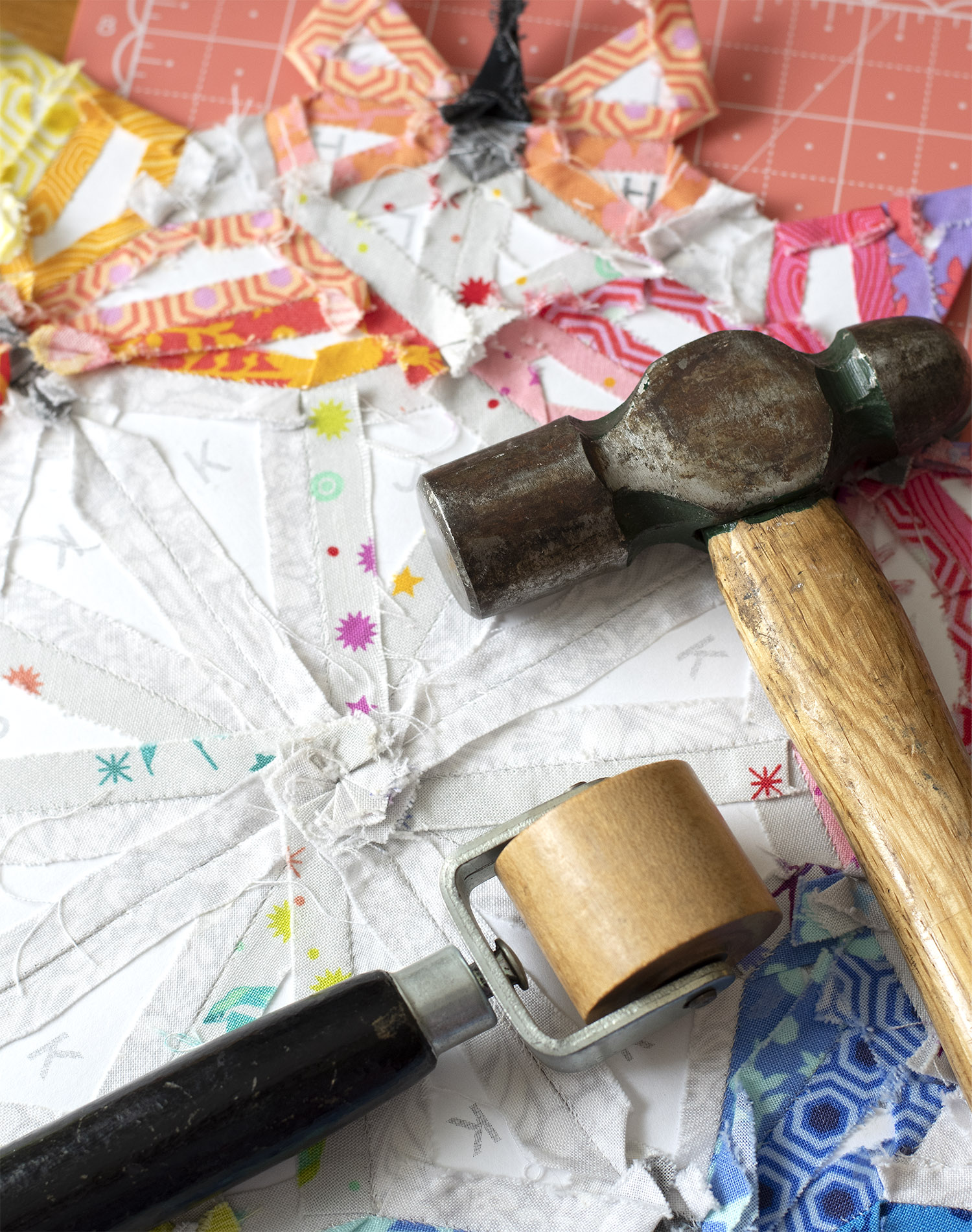 Above you can see a few tools that you can use to help remove your papers. Some of my favorites aren’t pictured, but are used in the video below. You want to try a variety of tools that have thin, pointy edges and tips, but aren’t super sharp as to easily tear your fabric or papers.