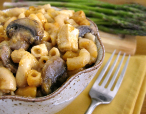 The original recipe calls for water and about 2 teaspoons salt (or more to taste). I used vegetable broth for some added flavor and a little water to make up the difference. Four and half cups of liquid worked perfect for me, which is what the original recipe called for. I thought being at a high altitude that I would need to boil it longer for the noodles to be done and may need more liquid, but I did not.