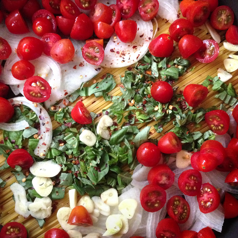 12 ounces grape or cherry tomatoes (halved or quartered)