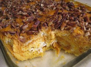 Tired of traditional pumpkin pie or looking to shake things up this Thanksgiving? Then I have just the recipe for you. Best part is you could practically make it with your eyes closed, though I wouldn’t necessarily recommend it. I’m just sayin’, it’s really easy! My mom described it as ‘orgasmic’, so I guess that means it’s also pretty darn tasty, and I’ll second that.