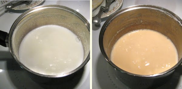 When it begins to bubble, remove from heat and stir in the baking soda. It will foam up a bit.