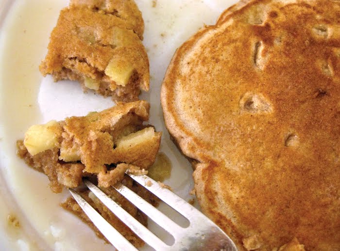 Nope, they aren’t buttermilk pancakes (which are always the best), but these cook up so fluffy and delicious, no one will ever know the difference. The best part is you don’t need any special ingredients. If you keep whole wheat flour in your pantry and have an apple on hand, you’re all set. No buttermilk, no needing to make your own buttermilk, no yogurt — just the basics. Easy-weasy-japanesey, as my high school geometry professor used to say.