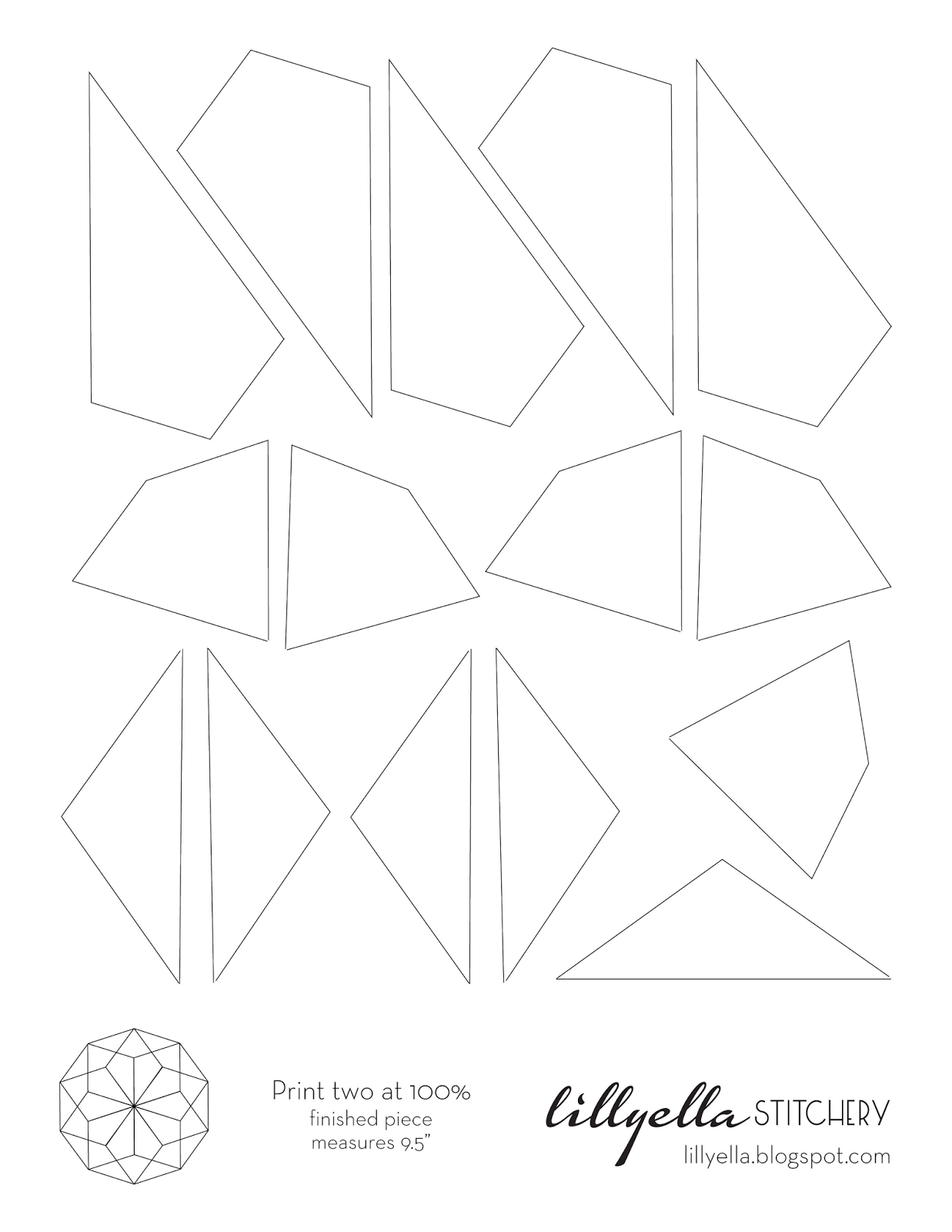 I made mine into a little table topper (isn’t it the perfect little mini tree skirt?!), but it would also be nice used on a pillow, as a trivet or on a bag. You can download a PDF of the templates by clicking the image below. You will need to print two sheets so you have ten of each shape.