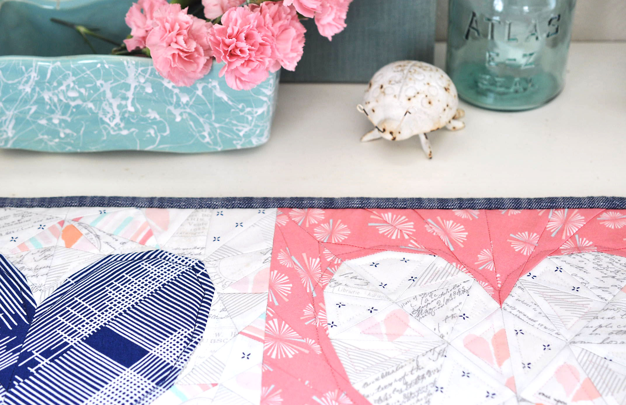 Above you can see just a few variations from mats that I’ve made in the past. The top left follows the pattern as written, which the bottom left follows the same sizing and layout, but uses full cuts of fabric (rather than piecing) with cute fussy cuts! On the right, there is a little mix of both. I substituted my Love Story pattern block for the butterfly and then used solid fabric cuts for the other pockets with some added lace trim details.
