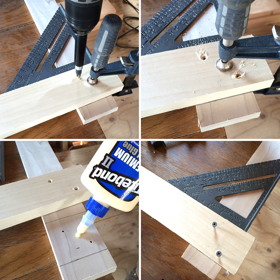 After predrilling, you can apply wood more glue and then screw in place, or just screw in place if not using glue. Once both spacers are in place, your frame is complete! Give yourself a hand!