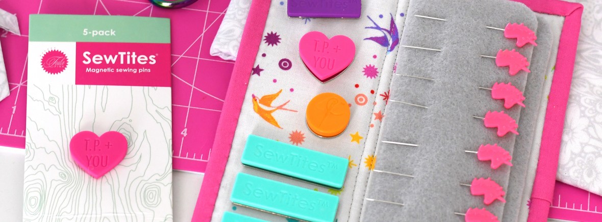 This little folio is designed for storing Sew Tites magnetic pins with two pieces of metal in the body to keep them in place. A double layer of felt acts as a buffer between the Sew Tites on front and back and also provides storage for pins & needles. The Hold Tite Folio is perfect for tucking into a project bag, keeping on your sewing table or using for extra storage to help prevent a big clump of Sew Tites and everything they stick to! This pattern is for those with basic sewing, quilting & binding knowledge.