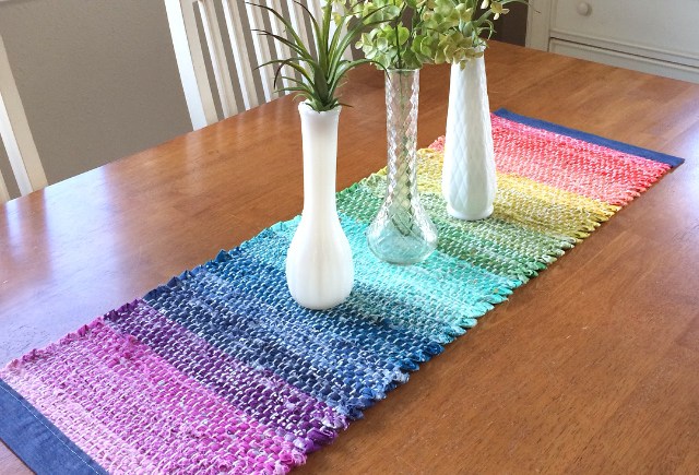The following two-part tutorial will show you how to build your own loom (in any size) using simple tools and then how to weave a piece using fabric strips that can be used as a table runner, placemat, throw rug, even a bag panel or so much more.